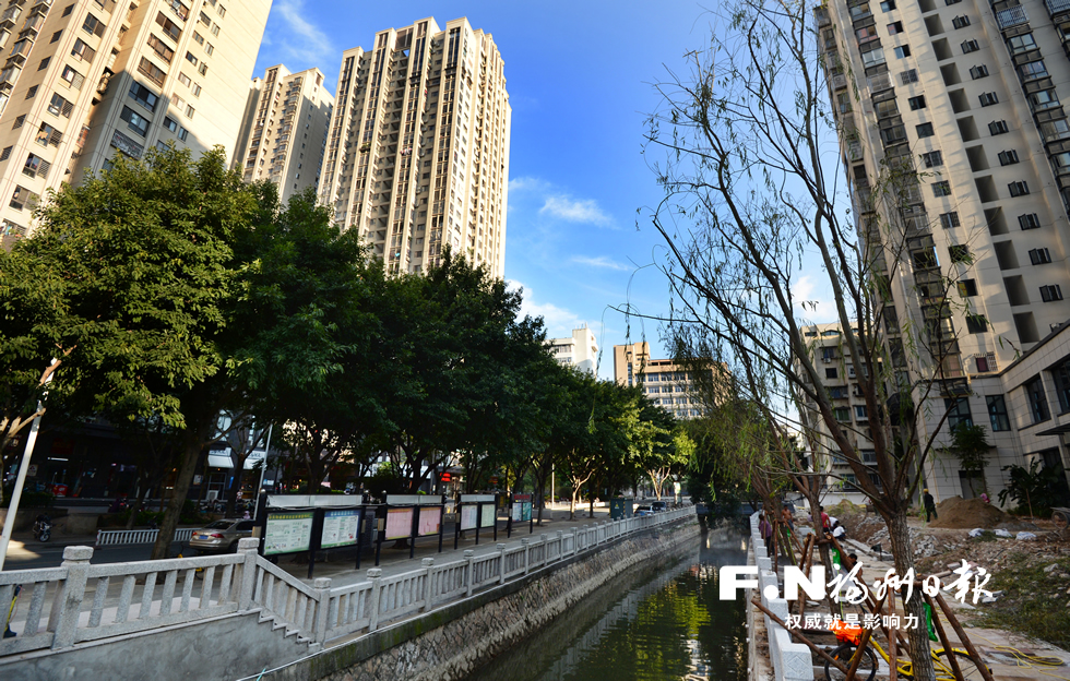昨日下午,記者來到華屏路上的屏東河上游段,人行道上一棵棵大葉榕延伸而去,帶來成片綠蔭,沿河新建步道處,一個(gè)個(gè)樹坑已挖好,等待即將“安家”的樹木,不少施工人員正圍著剛到場(chǎng)的柳樹忙碌著。本月底,作為鼓臺(tái)片區(qū)“卷地毯”首批示范河道,屏東河就將全新亮相。